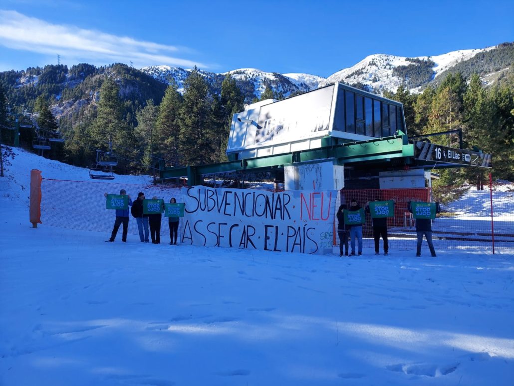 Per tot plegat, membres del col·lectiu han despenjat una pancarta des d’un remuntador amb el lema ‘Subvencionar neu, assecar el país’ i han insistit a fer una crida per diversificar l’economia.