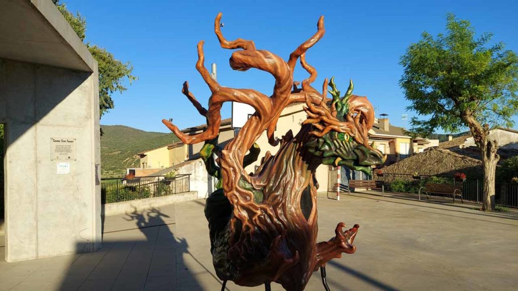 La figura representa la fauna i la flora que rodegen Tragó amb els ulls inspirats en els d’un escurçó i les banyes d’un cabirol. El cos de la figura segueix la forma d’una soca d’arbre.