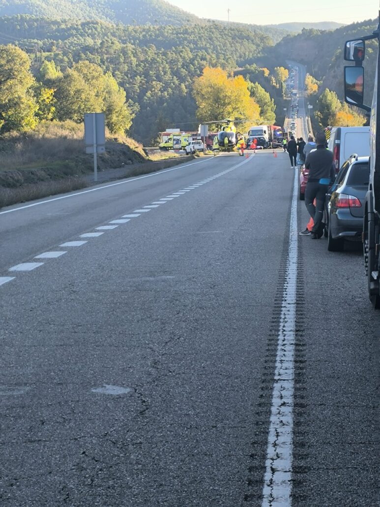 REDACCIÓ (Bassella).- Un xoc entre un camió i dos turismes ha tallat en els dos sentits de la marxa la carretera C-14, al quilòmetre 135, al municipi de Bassella. L’avís de l’accident s’ha donat a dos quarts de quatre de la tarda i s’han desplaçat set dotacions dels Bombers de la Generalitat fins al lloc de l’accident.