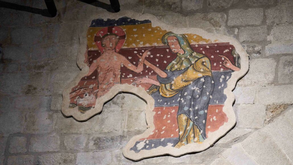 Els treballs de restauració arquitectònica, dirigits per Alejandro Ferrant, a finals dels anys 60 van permetre localitzar aquest significatiu fragment de pintura mural. L’obra era ubicada sobre una columna de les arcades que separen la nau central de les laterals.