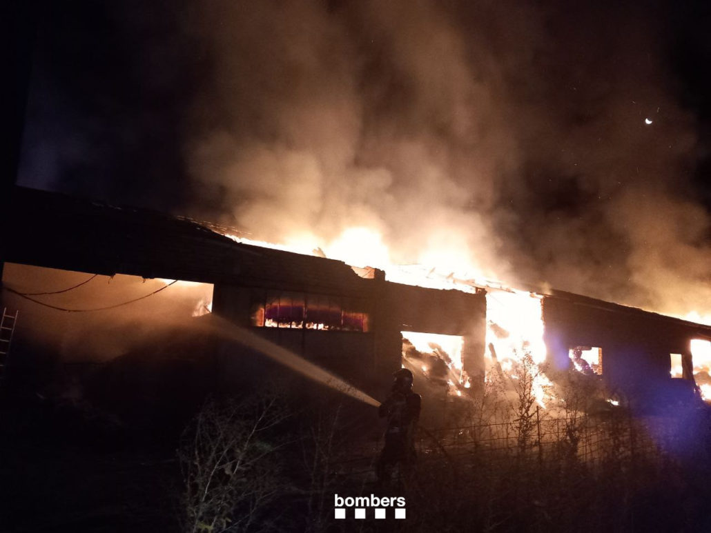 Les flames han afectat greument el paller, situat al carrer de Santa Llúcia, i han provocat l’esfondrament de la coberta de l’edifici. A més, ha cremat maquinària que hi havia a l’interior.