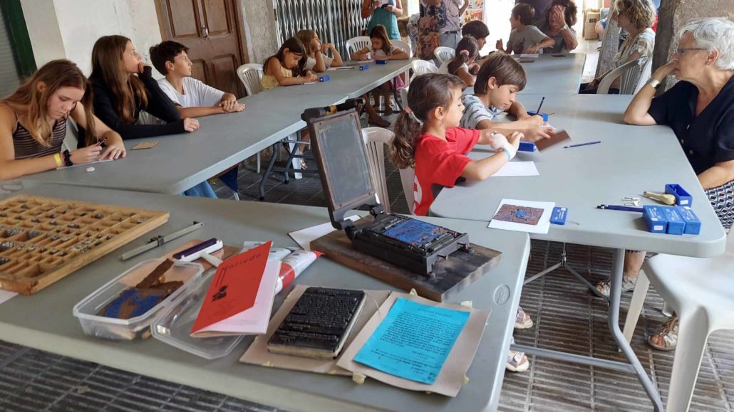 Aquest divendres, la programació, ha començat amb un taller d’impremta, utilitzant el mètode Freinet, amb els infants. Nens i nenes han pogut conèixer aquesta tècnica, utilitzada a l’escola de Fígols els anys 1935 i 1936, amb la qual van editar la revista Narieda.
