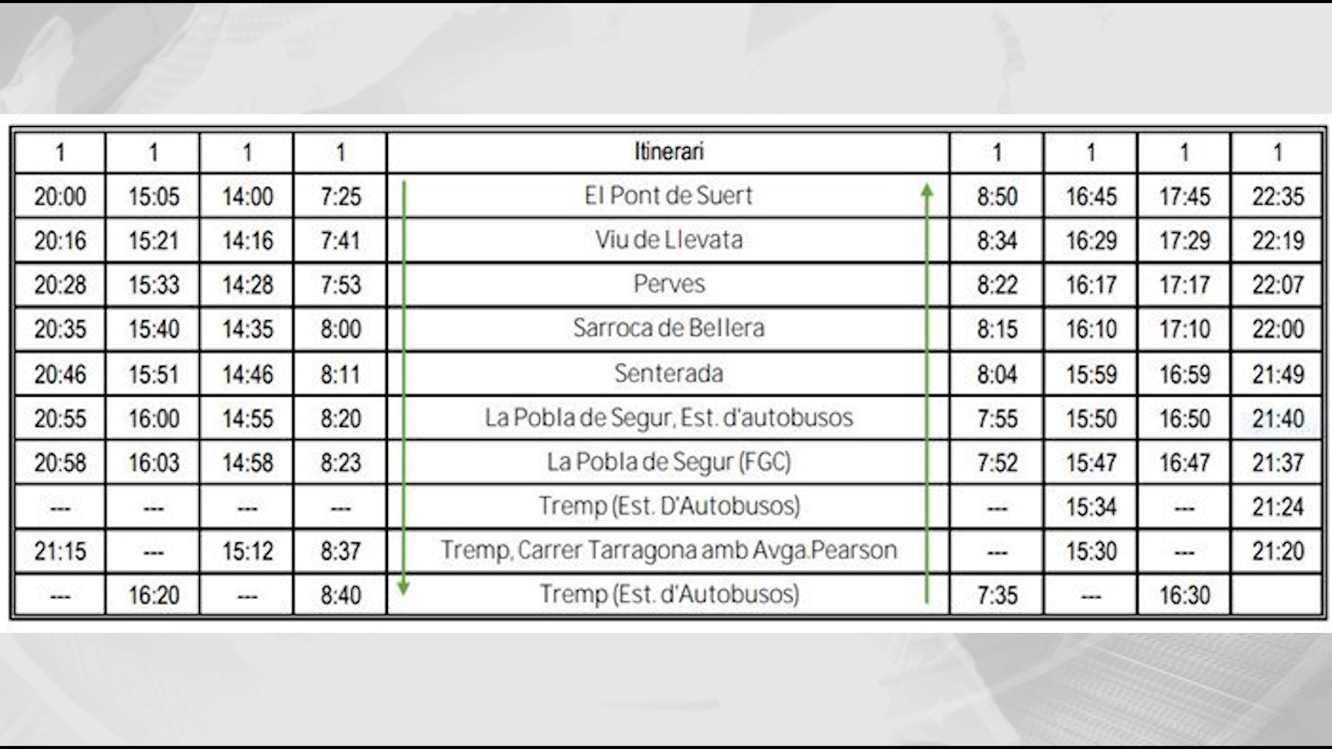 L’increment des del 2019 del nombre de serveis interurbans a tot Catalunya, ha fet que s’obrin noves línies de busos per connectar diferents poblacions. En el cas de la línea entre Tremp i El Pont de Suert, el secretari de Mobilitat i Infraestructures, Manel Nadal, ha explicat que es posarà en marxa el proper 12 de setembre amb una freqüència de quatre viatges per sentit i de dilluns a divendres lectius.